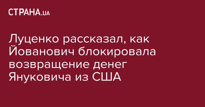 Луценко рассказал, как Йованович блокировала возвращение денег Януковича из США