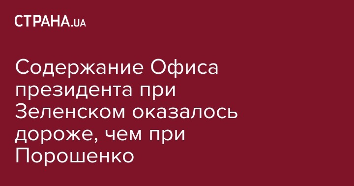 Расходы на содержание Офиса президента и деятельность главы государства за 5 месяцев каденции шестого президента Украины Владимира Зеленского составили 353 миллиона гривен, что на 27 млн дороже, чем содержание Администрации президента при пятом главе государства Петре Порошенко. Соответствующая информация опубликована на сайте Государственной казначейской службы.