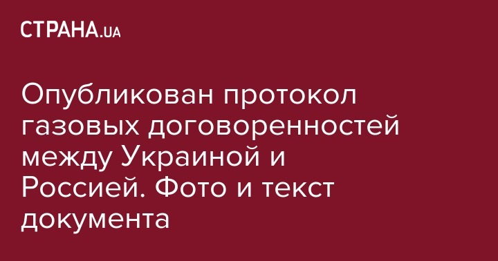 Опубликован протокол газовых договоренностей между Украиной и Россией. Фото и текст документа