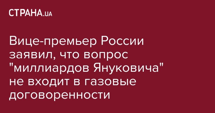 Вице-премьер России заявил, что вопрос "миллиардов Януковича" не входит в газовые договоренности