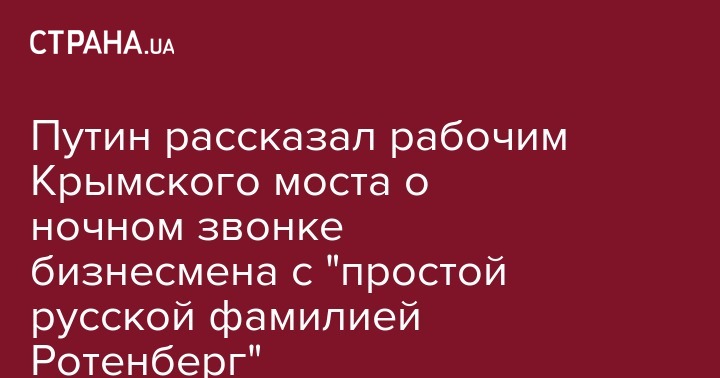 "Мне ваш основной руководитель с простой русской фамилией Ротенберг позвонил ночью и говорил таким голосом, что я его спрашиваю: "Ты что, выпил, что ли?" Он говорит: "Нет", — рассказал глава государства рабочим.