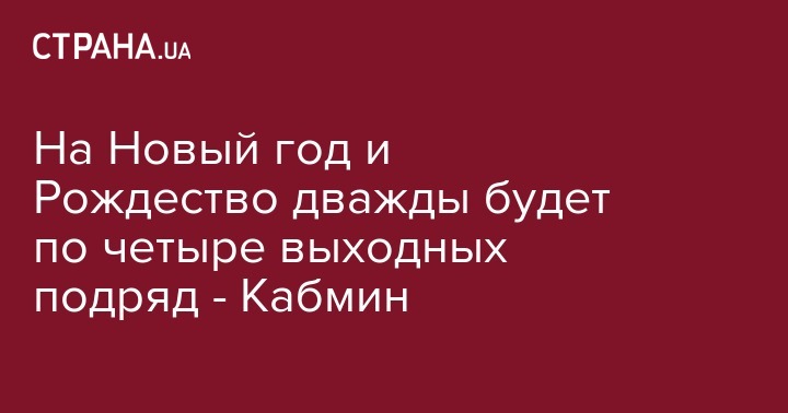 Два блока по четыре выходных дня подряд ожидаются в Украине на новогодние и Рождественские праздники. Об этом говорится в распоряжении правительства о переносе рабочих дней в 2019 году.