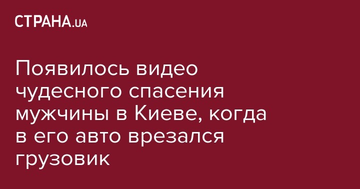 На одной из автозаправочных станций Киева случилась авария, во время которой мужчина в последний момент успел отскочить от своего автомобиля, в который на полном ходу врезался грузовой автомобиль.