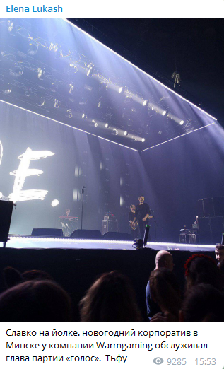 "Славко на йолке. новогодний корпоратив в Минске у компании Warmgaming обслуживал глава партии "Голос". Тьфу" - написала экс-министр юстиции Елена Лукаш, говоря о том, что лидеру парламентской фракции не к лицу развлекать людей песнями и танцами.