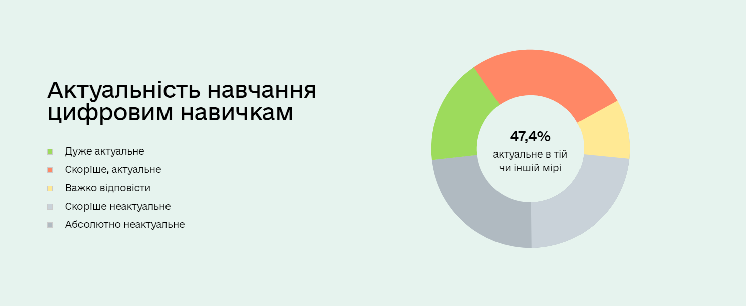 "Мы получили ответ на то, что украинцы понимают под "цифровой грамотностью" и чувствуют ли они потребность в обучении цифровой грамотности. Это очень важная информация, которая позволит Министерству цифровой трансформации эффективно реализовать политику в сфере развития цифровых навыков граждан", - сказано в сообщении.