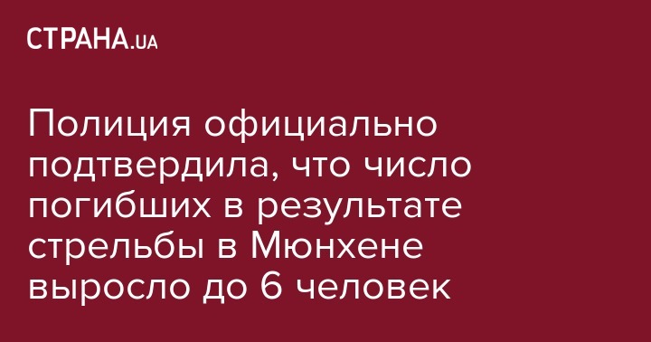 Полиция Мюнхена официально подтвердила, что в результате стрельбы погибли шесть человек. Об этом полиция сообщила в Twitter.