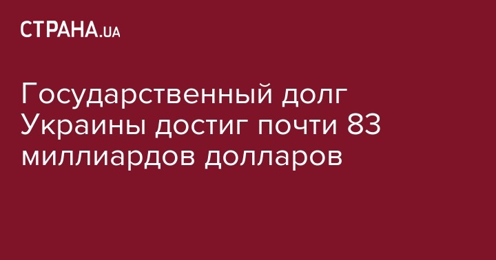 Объем государственного и гарантированного государством долга Украины за январь-ноябрь 2019 года вырос в долларовом эквиваленте на 4,5 миллиарда долларов, или на 5,8%, до 82,8 миллиарда долларов.