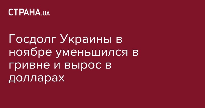 Госдолг Украины в ноябре уменьшился в гривне и вырос в долларах