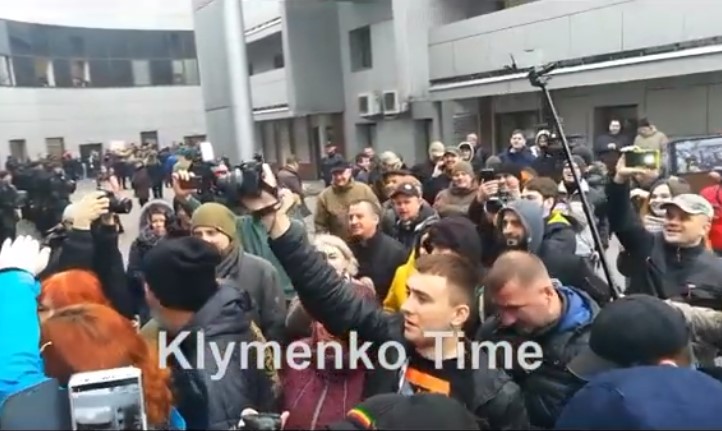 Рядом снимал травлю журналиста радикал Сергей Стерненко, зарезавший в прошлом году человека в Одессе и ранивший еще одного. Полиция еще летом составила против него подозрение, однако новый генпрокурор Руслан Рябошапка его заблокировал и передал дело в СБУ, где оно якобы расследуется.