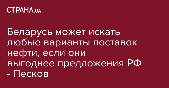 Об этом заявил пресс-секретарь президента РФ Дмитрий Песков, комментируя слова белорусского лидера о том, что Минск в условиях налогового маневра в нефтяной сфере в Российской Федерации вынужден искать альтернативные источники поставок нефти, передает ТАСС.