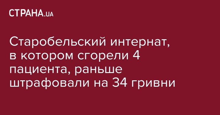 Старобельский психоневрологический интернат, который загорелся 22 декабря и унес жизни четырех пациентов, два года назад штрафовали на 34 гривни за нарушение техники безопасности. Об этом говорится в сюжете ОТВД.