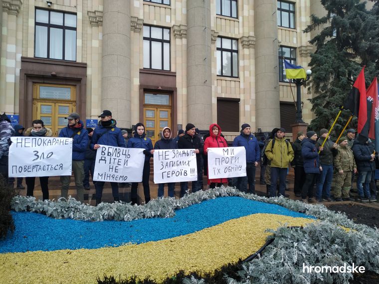 В Харькове возле здания облгосадминистрации около двухсот активистов "Национального корпуса", "Правого сектора", "Фрайкора" и общественной организации "Традиции и порядок" протестуют против возможного обмена обвиняемых в теракте возле Дворца спорта в 2015 году. Об этом сообщает Hromadske.
