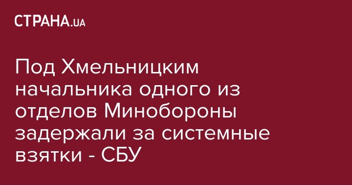Сотрудники Службы безопасности Украины (СБУ) задержали начальника одного из отделов Минобороны в Хмельницкой области за системную коррупцию. Об этом сообщает пресс-служба СБУ.