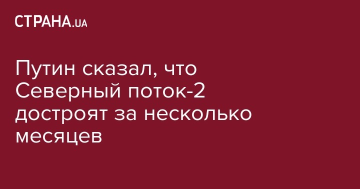 Путин сказал, что Северный поток-2 достроят за несколько месяцев