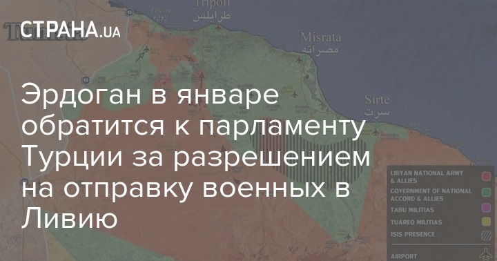 Эрдоган в январе обратится к парламенту Турции за разрешением на отправку военных в Ливию