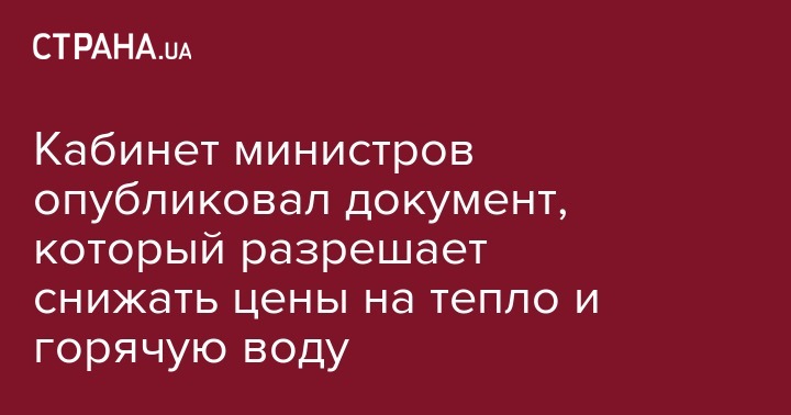 Кабинет министров Украины обнародовал постановление, которое разрешает поставщикам тепла проводить перерасчет платежек, если цена на газ снизится по сравнению с той, которая значится в тарифе.