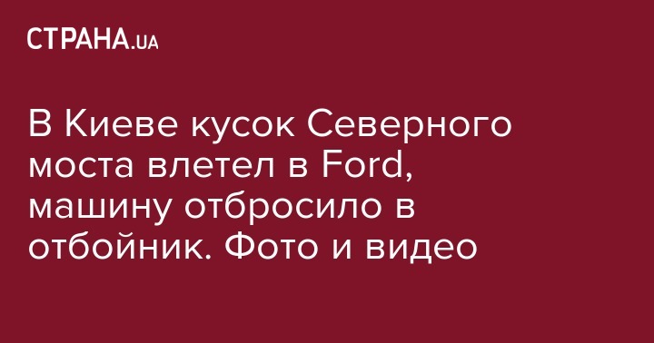 В Киеве кусок Северного моста влетел в Ford, машину отбросило в отбойник. Фото и видео