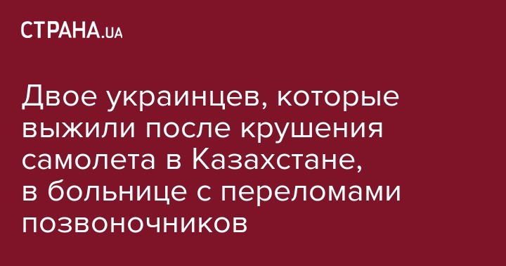 У двоих украинцев, которые были на борту разбившегося сегодня утром в Казахстане самолета, переломы позвоночника. Сейчас они находятся в больнице. Об этом сообщает Liter.kz.