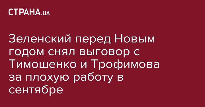 Зеленский перед Новым годом снял выговор с Тимошенко и Трофимова за плохую работу в сентябре