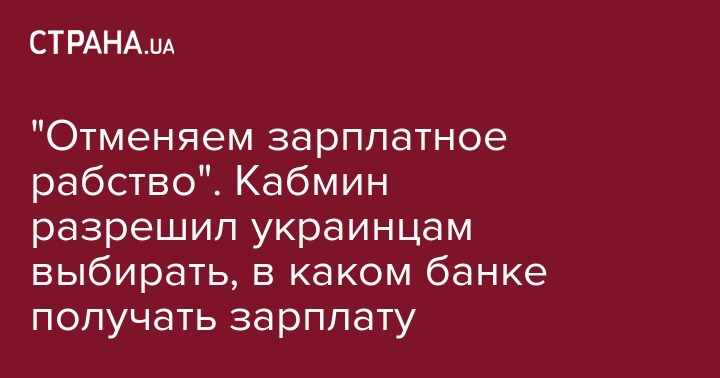Об этом сообщил премьер-министр Алексей Гончарук на своей странице в Telegram. "Отменяем "зарплатное рабство". Теперь украинцы сами будут решать, на карту какого банка получать зарплату, пенсию или соцпомощь... Теперь деньги можно будет получать на карточку любого банка, а не только там, где работодатель оформил "зарплатный проект", - написал Гончарук по итогам заседания правительства.