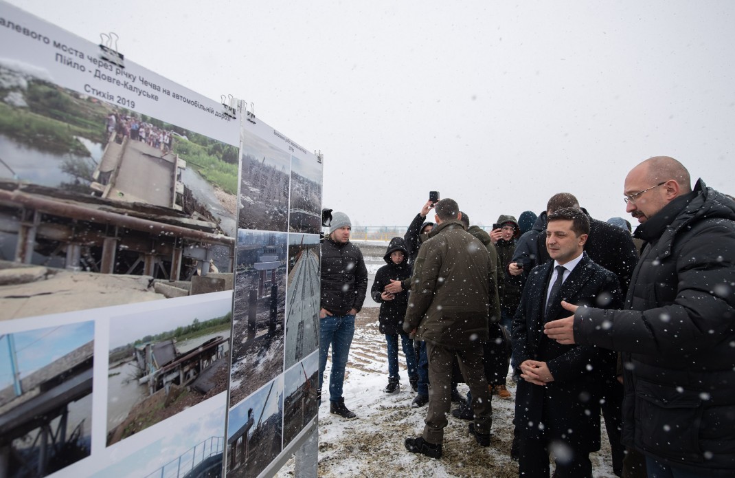 Президент Украины Владимир Зеленский во время рабочей поездки в Ивано-Франковскую область принял участие в открытии восстановленного мостового перехода через реку Чечва, соединяющий села Долгое-Калужское и Пойло. Об этом говорится на сайте Офиса президента.