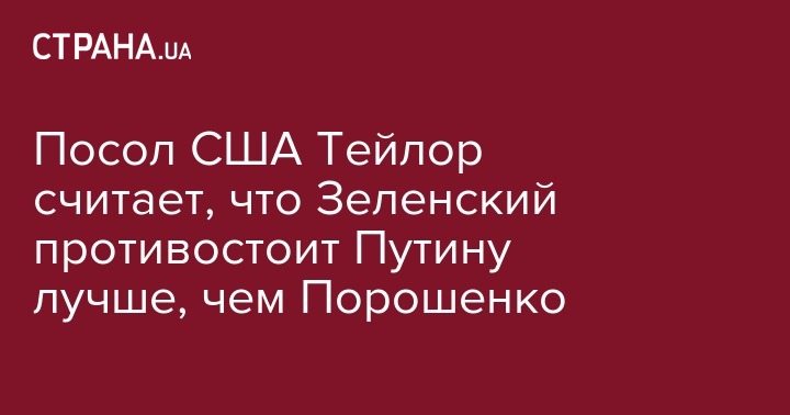 "Четыре телефонных разговора (с Путиным - Ред.), личная встреча, противостояние в которых было, по крайней мере, на равных, создают впечатление, что Зеленский отстоял свою позицию лучше, чем это удавалось господину Порошенко", - считает Тейлор.
