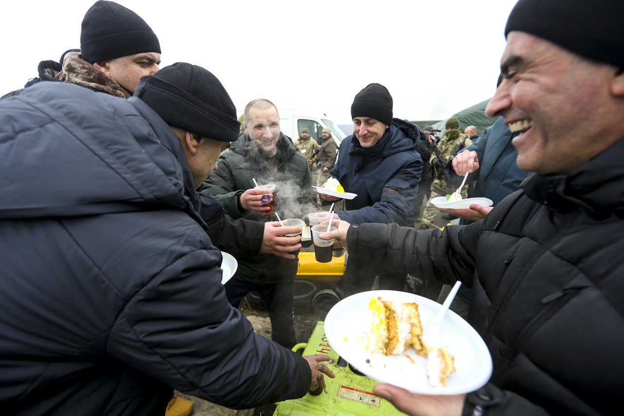 Украинская сторона подкрепила граждан тортами с чаем и кофе.