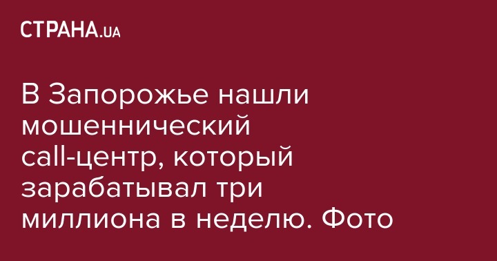 "Киберполиция прекратила деятельность мошеннического call-центра с еженедельным оборотом в 3 миллиона гривен. Мошеннические офисы размещались в городе Запорожье и действовали на территории Запорожской и Днепропетровской областей. Ежедневно их сотрудники имели более сотни контактов с клиентами. Используя методы психологического воздействия, они выманивали деньги граждан", - говорится в сообщении.