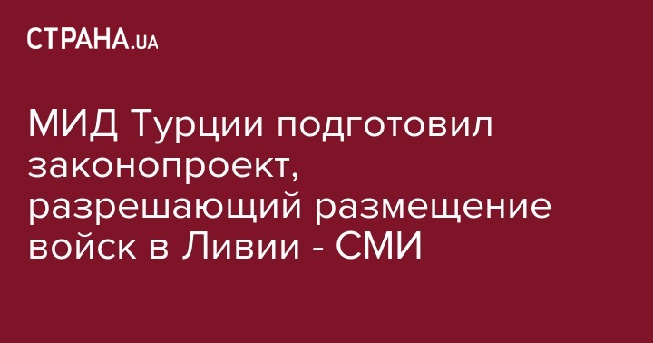 Глава Министерства иностранных дел Турции Мевлют Чавушоглу заявил, что законопроект, который разрешает размещение войск в Ливии, будет направлен в парламент в понедельник, 30 декабря.