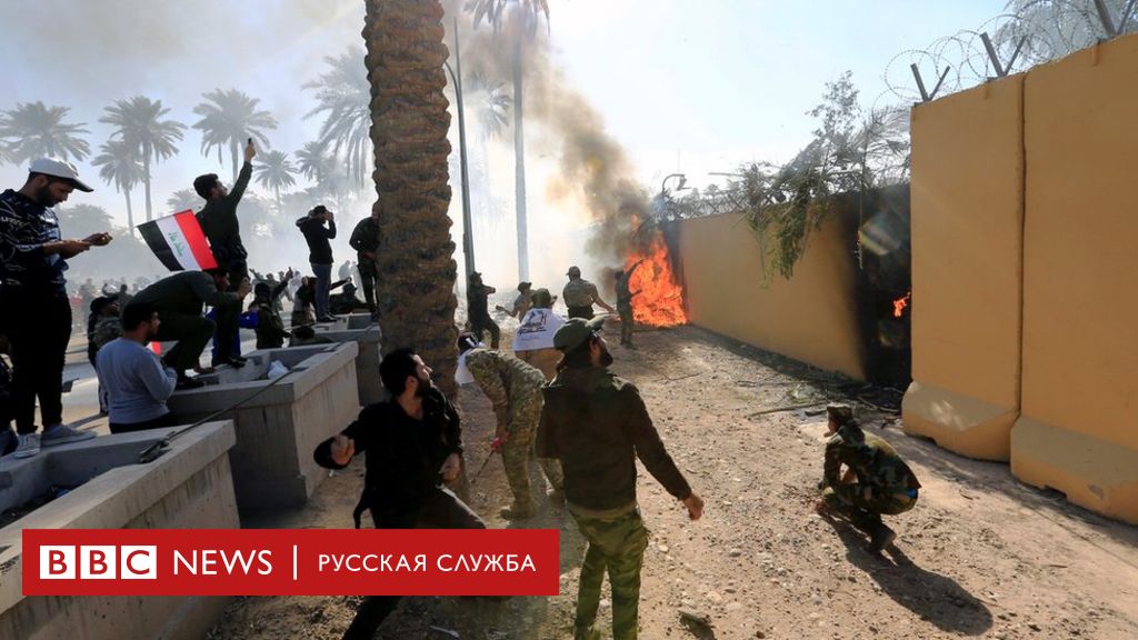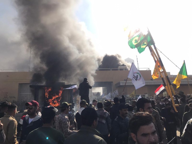 Протестующие в Багдаде штурмуют американское посольство в знак осуждения авиаударов по шиитскому ополчению. Они подожгли забор, устраивают массовые беспорядки.