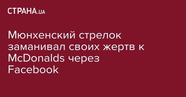 Мюнхенский стрелок заманивал своих жертв к McDonalds через Facebook