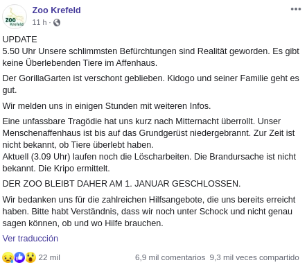 Скриншот: Facebook/Zoo Krefeld