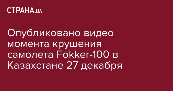 В сети интернет опубликовали видео момента крушения самолета Fokker-100 авиакомпании Bek Air в Алма-Ате 27 декабря. Катастрофу зафиксировали камеры уличного видеонаблюдения.