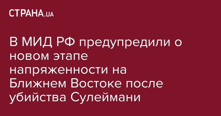 В МИД РФ предупредили о новом этапе напряженности на Ближнем Востоке после убийства Сулеймани