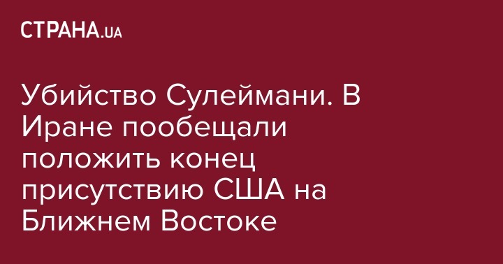 Главнокомандующий Корпуса стражей исламской революции (КСИР) генерал-майор Хосейн Салами заявил, что Тегеран в ответ на убийство командира "Кудс" Касема Сулеймани примет стратегические меры, которые должны положить конец американскому присутствию в регионе (вероятно, имеется в виду Ближний Восток - Ред.). "За убийство принявшего мученическую смерть генерала Кассема Сулеймани последует стратегическая месть, которая определенно положит конец американскому присутствию в регионе", - сказал Салами в интервью иранскому государственному телевидению.