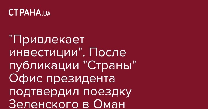 В Офисе президента подтвердили ранее опубликованную "Страной" информацию о том, что глава государства Владимир Зеленский пребывает в Омане.