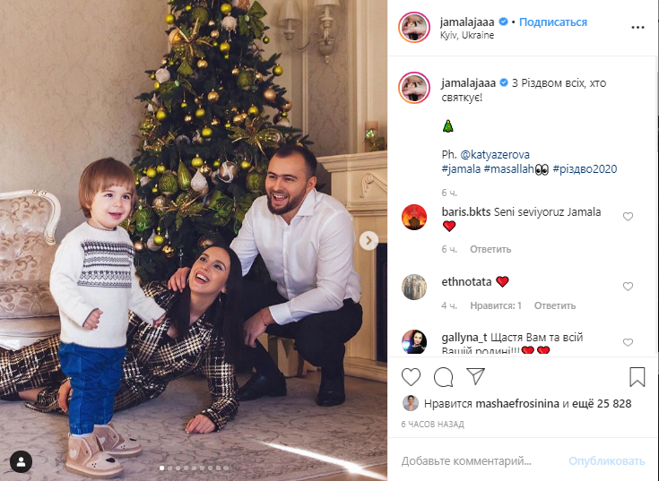 Украинская певица Джамала, которая является крымской татаркой, соответственно мусульманкой, поздравила с Рождеством всех, кто празднует и опубликовала семейное фото у новогодней ели.