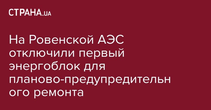 Энергоблок №1 Ровенской АЭС (ВВЭР-440) отключен от энергосети для проведения среднего планово-предупредительного ремонта (ППР), который рассчитан на 45 календарных дней. Об этом сообщается на сайте НАЭК "Энергоатом".
