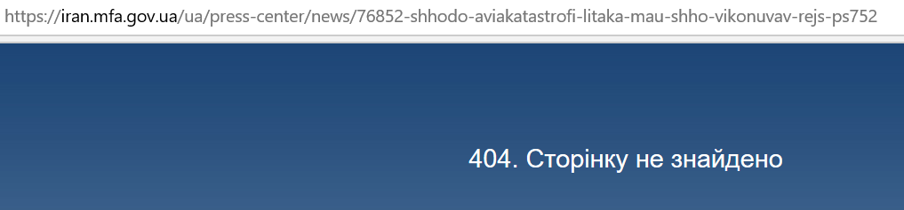 10:46  Посольство Украины в Иране убрало со своего сайта новость, в которой говорится, что ни теракт, ни ракета не виноваты в падении самолета.