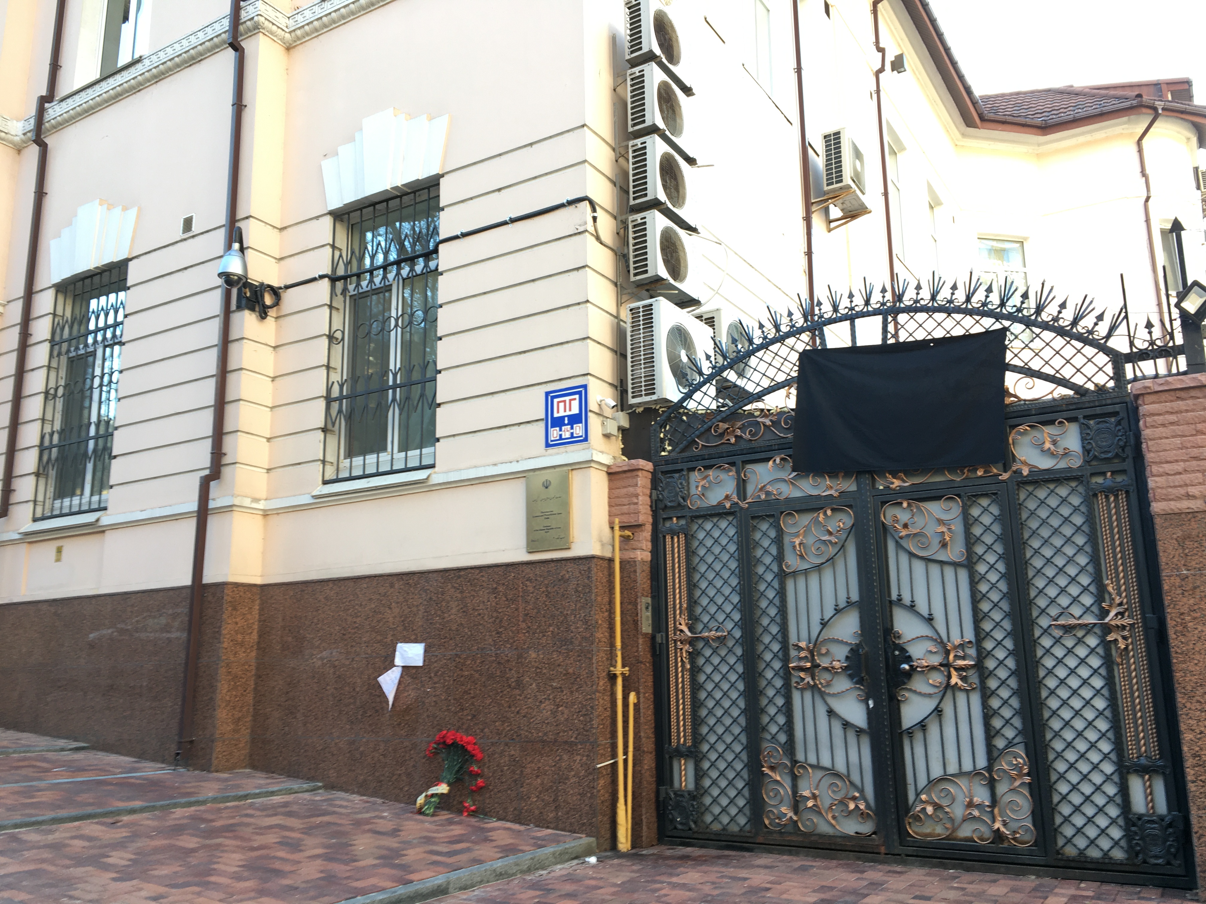 12:42  А вот у посольства Ирана уже кто-то положил букет гвоздик.