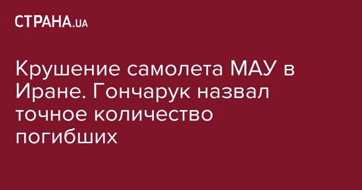 Премьер-министр Украины Алексей Гончарук сообщил, что в авикатастрофе самолета МАУ в Иране погибли 176 человек. Кроме того, он заявил об организации работы по установлению причин случившегося.