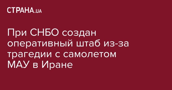 При Совете национальной безопасности и обороны (СНБО) Украины создан оперативный штаб в связи с авиакатастрофой самолета Boeing 737 авиакомпании "Международные авиалинии Украины" в Иране. Создание штаба организовано по поручения президента Украины Владимира Зеленского.