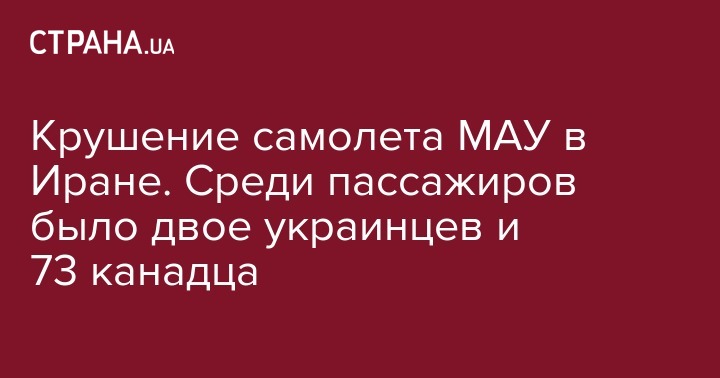 Как сообщала "Страна", крушение самолета произошло в Тегеране 8 января утром, когда Boeing 737 украинской авиакомпании МАУ (рейс 752) поднялся в небо из международного аэропорта имени Имама Хомейни. На сегодня подтверждена информация о 168 пассажирах, прошедших регистрацию на рейс, и о 9 членах экипажа. Позже стало известно, что никто не выжил в трагедии.