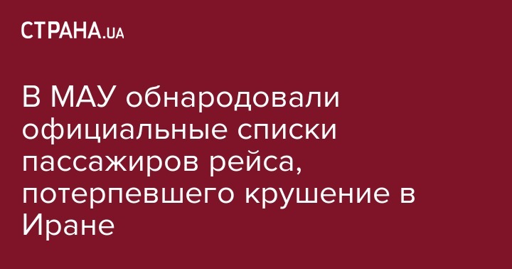 В МАУ обнародовали официальные списки пассажиров рейса, потерпевшего крушение в Иране