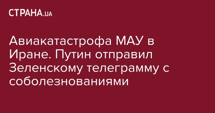 Авиакатастрофа МАУ в Иране. Путин отправил Зеленскому телеграмму с соболезнованиями