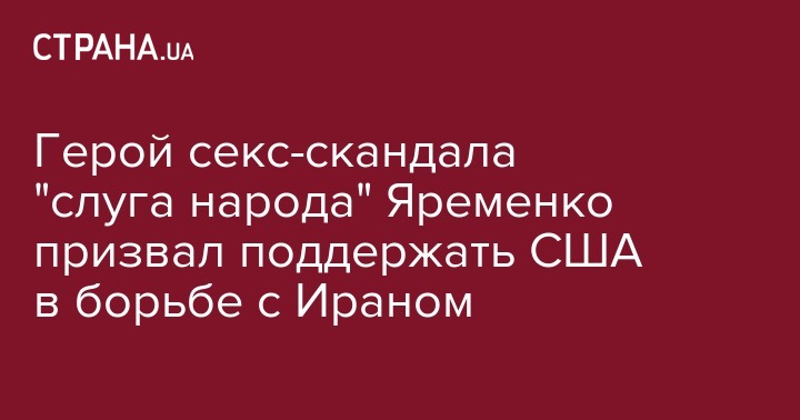 Народный депутат из "Слуги народа" Богдан Яременко, который прославился после переписки на сайтах знакомств с проститутками прямо в зале Верховной Рады, призвал не стесняться поддерживать США в борьбе с Ираном. Об этом он написал на своей странице в Facebook.