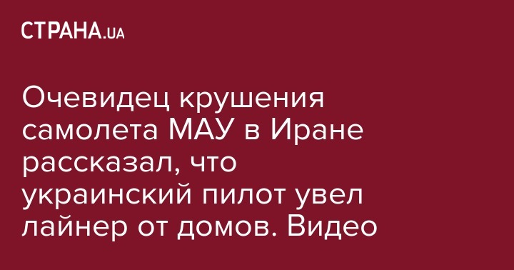 Очевидец падения украинского самолета "Боинг" авиакомпании МАУ в Иране рассказал журналистам, что пилот старался увести борт от жилых домов. Видеозапись интервью очевидца появилась в Telegram-канале RT на русском.