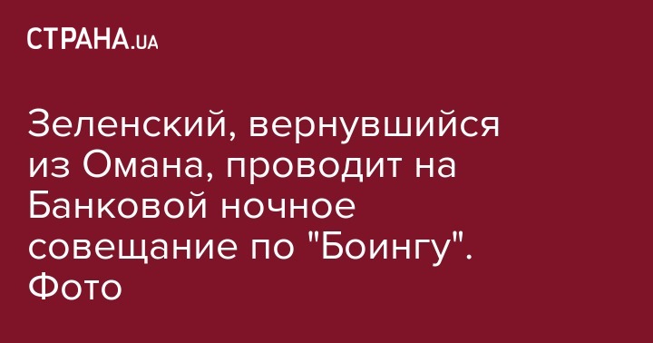 Президент Владимир Зеленский, который сегодня ночью вернулся с отдыха в Омане, проводит экстренное совещание по катастрофе украинского "Боинга" в Иране.