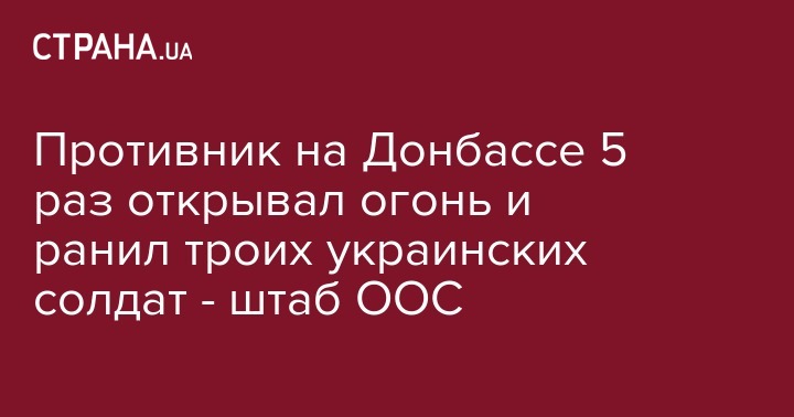 "8 января вооруженные формирования Российской Федерации 5 раз нарушили режим прекращения огня. В результате вражеских обстрелов три военнослужащие Объединенных сил получили ранения", - говорится в сообщении на официальной странице штаба ООС в соцсети Фейсбук в четверг утром.