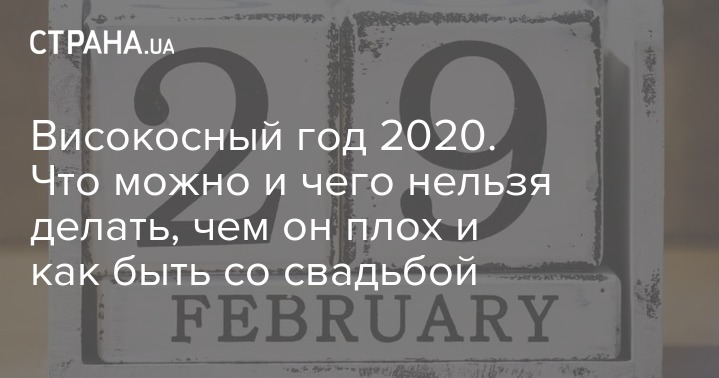 "Страна" собрала информацию, которую интересно знать о високосном годе. А именно что можно и чего нельзя делать; почему этот год считается плохим, как быть со свадьбой, какую дату рождения записывать ребенку, который появится на свет 29 февраля, и многое другое.